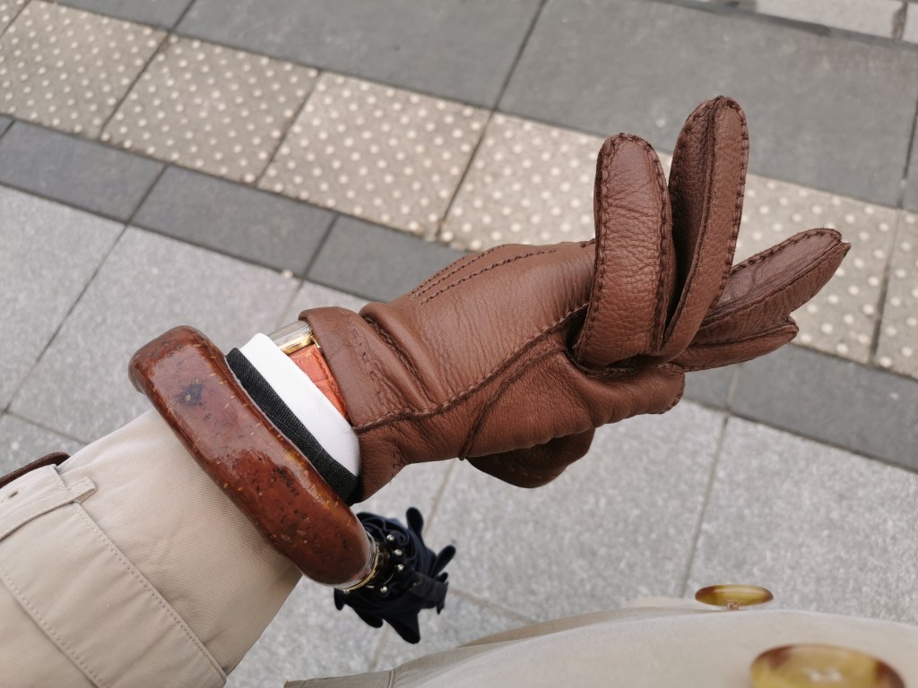 Cela semble presque évident. Pourtant trop peu de gens portent des gants. Indispensables l’hiver, voire à la mi-saison, quand les matins sont frais, les gants sont tes amis. Idéalement une belle paire de gants doit être faite en cuir, peu importe si c’est de l’agneau, du cerf, ou la Rolls, du pécari. C’est une question de goût, et de style, chaque peau ayant un aspect esthétique bien particulier. Pour la doublure, il y a différentes écoles. Les personnes rigides ne jurent que par le cachemire. En pratique tu as le choix, non doublé, de la soie, de la laine, du cachemire… Cela dépend à la fois de ta sensibilité au froid et d’où tu habites. Idéalement, la paire sera réalisée artisanalement, à Naples ou Saint Junien, même si je ne peux que t’exhorter à considérer la production de l’illustre maison Omega à Naples.