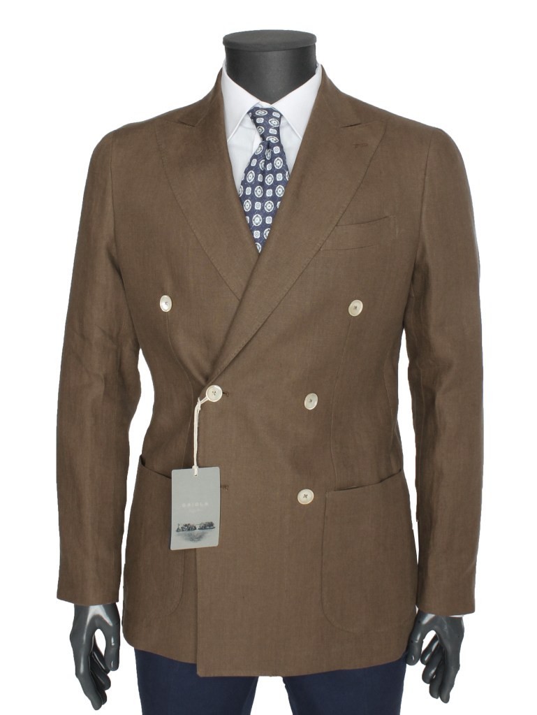 Dans un univers financier bien plus accessible, voici un indispensable estival, la veste croisée en lin couleur tabac, avec toujours des détails très napolitains : poches plaquées, épaules naturelles, demi-doublure, une veste qui devient vite un élément de notre signature stylistique