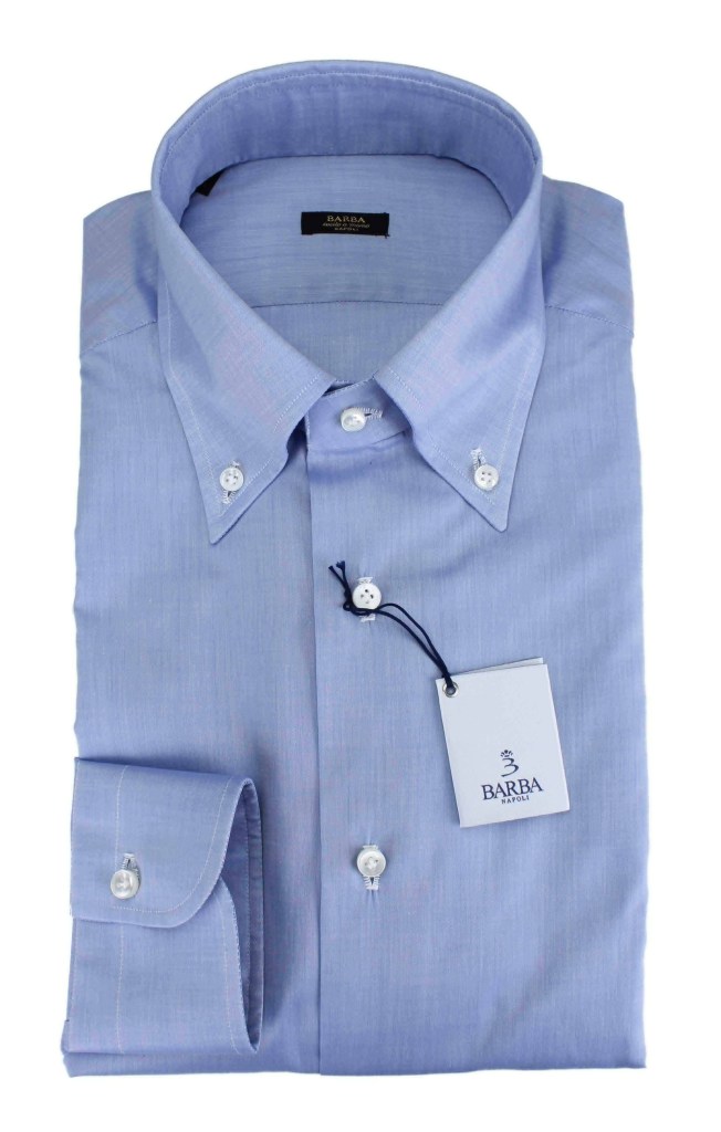 Voici un autre indispensable, une chemise bleu ciel à col boutonné. Certes, c’est déjà bien mais ce modèle-ci est issu de la gamme Gold Line de la maison Barba, qui utilise des tissus plus luxueux et avec une majorité du travail réalisé main. On accède ainsi pour moins de 200 € à un produit tout à fait exceptionnel