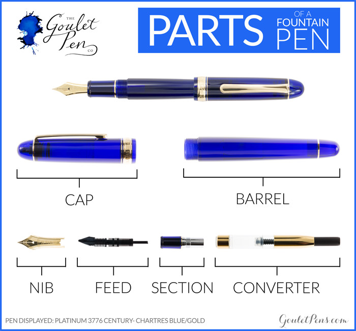 On ne choisit pas un stylo plume à la légère. Il est en général composé de 4 parties.
