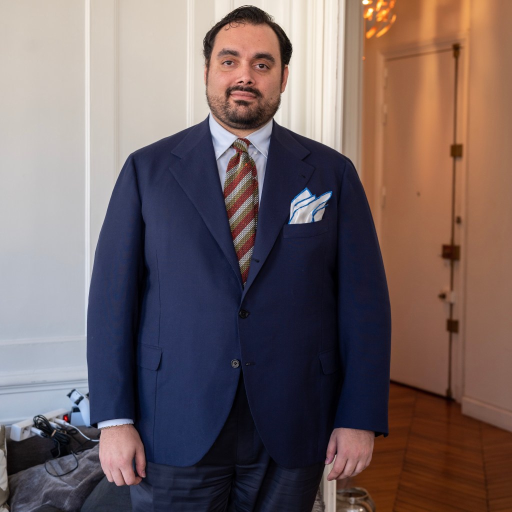 Je sais qu’en 2023, le marketing autour de l’expérience à vivre a été largement exploité. Et pourtant, lorsque je parle de mesure, c’est ce qui me vient le plus vite à l’esprit. Évidemment, un costume réalisé par un tailleur ce sera une pièce superbe en termes d’artisanat, de coupe… Mais pour beaucoup de clients, c’est trouvable aussi en prêt-à-porter. Il existe des marques qui font des costumes réalisés entièrement à la main comme si c’était de la mesure. Pour peu que tu aies un physique relativement standard, quelques bonnes retouches et ce sera parfait. En une semaine tout sera prêt. Alors qu’est-ce qui explique qu’il existe encore des gens assez fous pour patienter plusieurs mois, et payer un surcoût non négligeable pour de la mesure. Selon moi, tout est dans cette expérience unique, propre à chacun, elle dépendra de ta personnalité, du tailleur que tu choisis. Dans notre vie de plus en plus uberisée, ces moments qu’un artisan te consacre, juste à toi, sans limite de durée pour juste écouter tes envies, c’est du luxe. C’est un plaisir unique, tout autant présent en demi-mesure dite industrielle qu’en grande mesure, ce moment où tu peux enfin passer ces vêtements qui ont été réalisés juste pour toi, ce plaisir de voir le résultat final d’une idée qui a germé dans ton esprit quelques mois plus tôt, c’est toujours excitant. Oui, même après toutes ces années, et différentes commandes, lorsque je reçois une nouvelle pièce, j’ai toujours le même sourire niais devant le miroir, et ça, c’est le plus important.