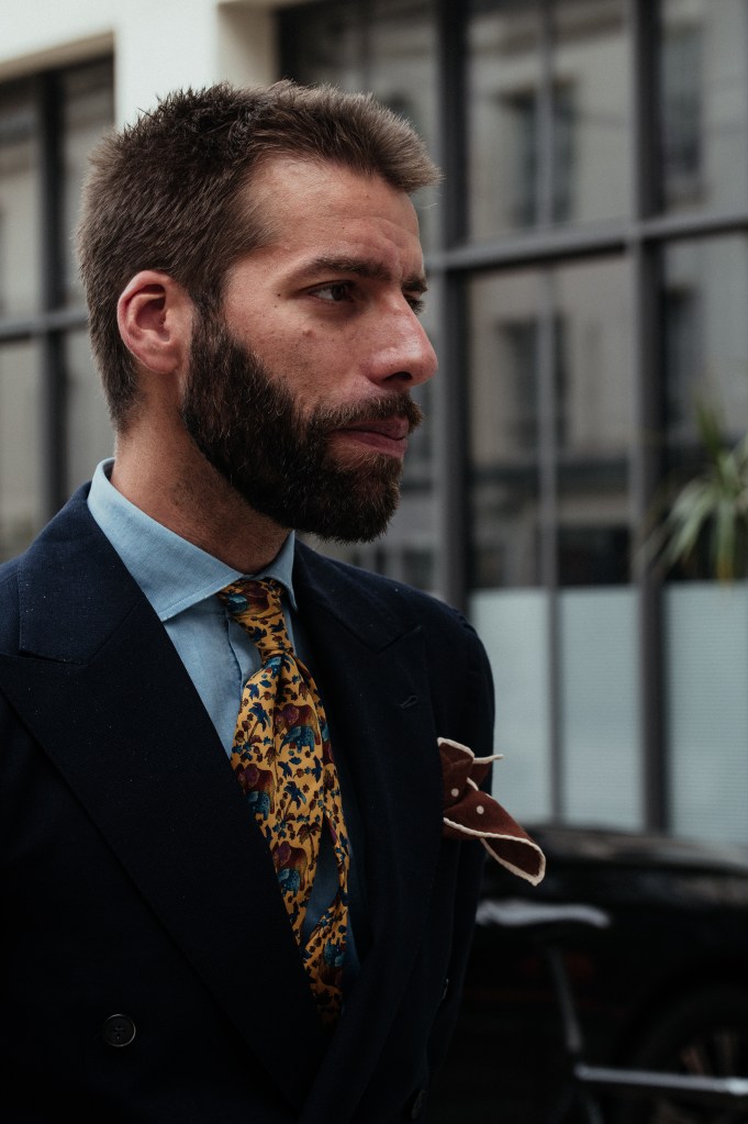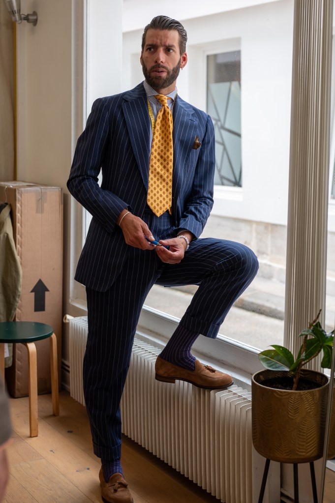 Reste la question du style, ce je-ne-sais-quoi qui fait qu’on a envie de porter une tenue. Je le martèlerai toujours : va chez un tailleur (ou demi-mesureur) dont les pièces vues en photo ou en vrai te font vibrer, te donnent l’envie immédiate de les endosser. Cela simplifiera grandement la prise de commande si le client et le professionnel sont sur la même longueur d’onde. Chez les Francs-Tireurs, Yves est très ouvert aux souhaits du client : pas de dogmatisme sur ce que pourrait être LE bon costume, tant que l’harmonie globale est respectée.